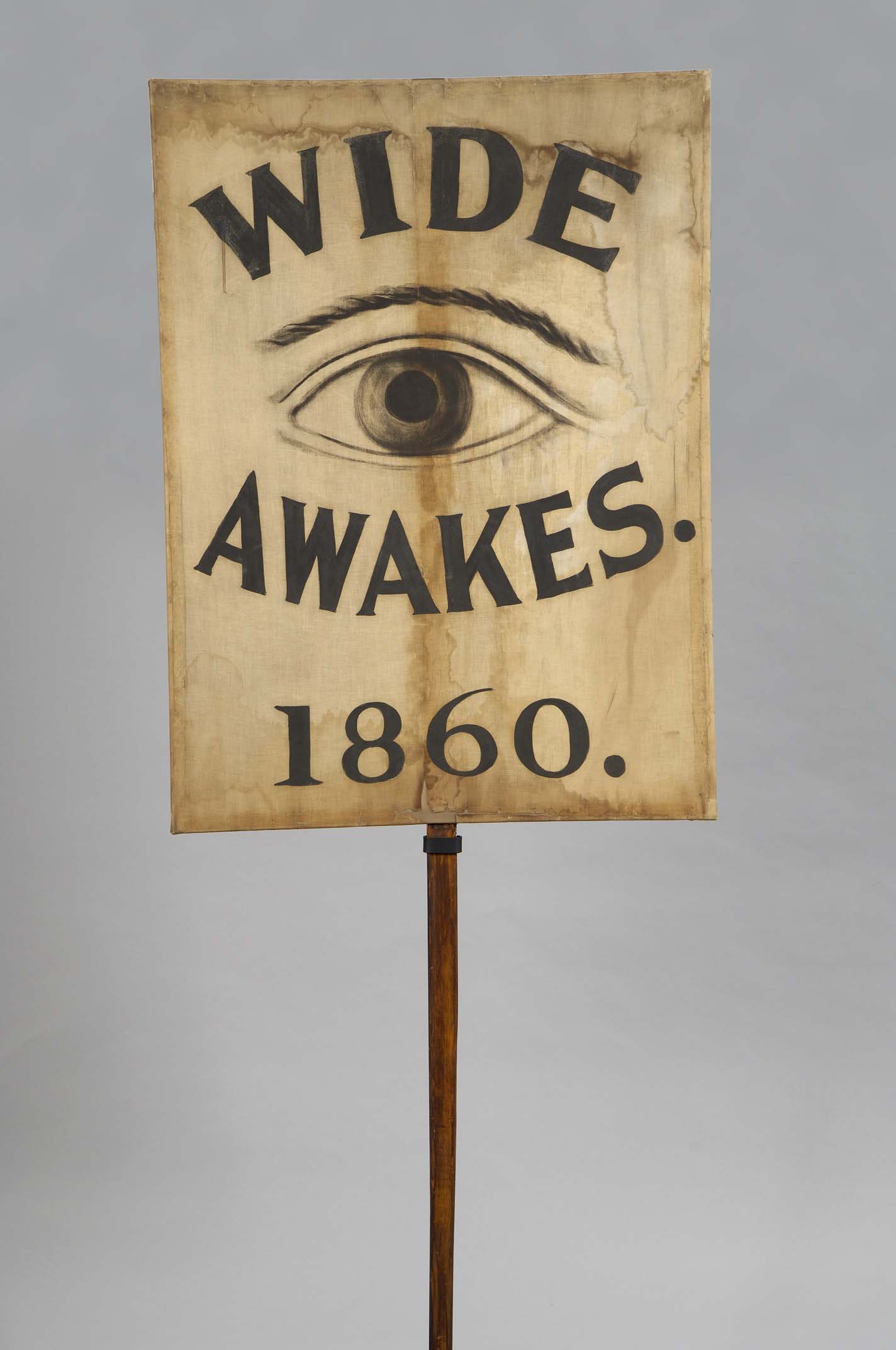 Source #1. Wide Awakes banner, 1860. Connecticut Museum collection, gift of Dr. Robert M. Yergason, 1922.4.3.